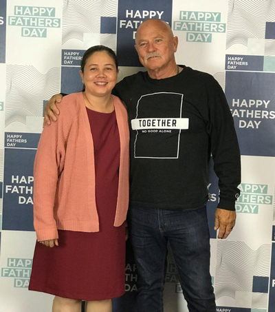 Hai cha con ông Jim trong ngày hội "Ngày của cha" tại Mỹ năm 2018. Ảnh: Jim Heintz.