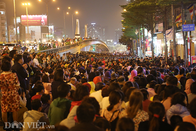 Đường Tây Sơn chật cứng người ngồi lễ một đoạn dài quanh khu vực cầu vượt Ngã Tư Sở.