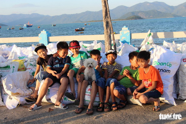 Thấy những người nước ngoài dọn rác, những người dân địa phương và trẻ em sống quanh bãi biển đã xuống hỗ trợ.