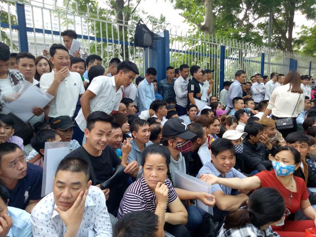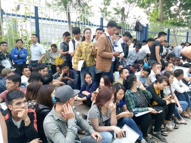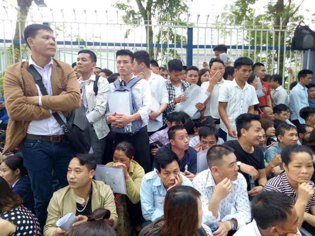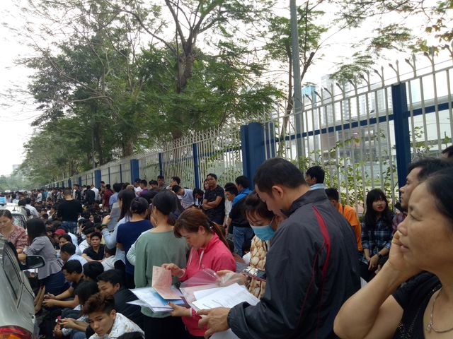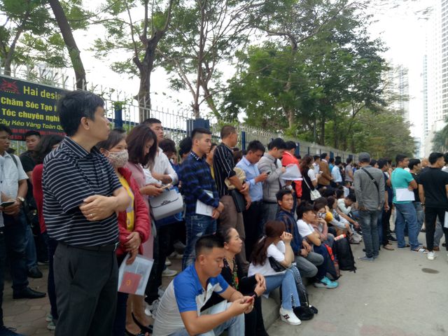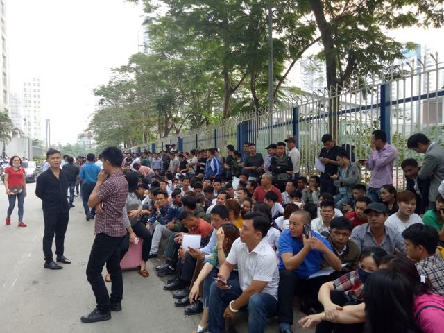Cảnh tượng vạ vật xếp hàng làm thủ tục visa trước Phòng lãnh sự Hàn Quốc