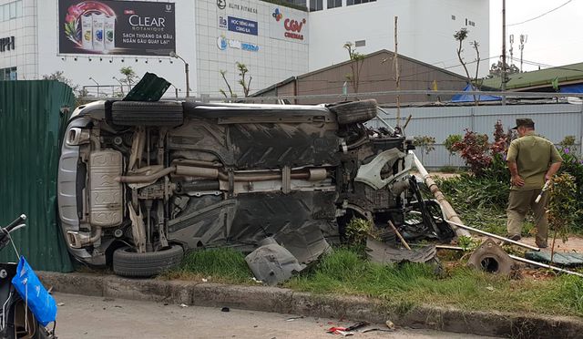 Tại hiện trường, chiếc Mercedes nằm lật nghiêng phía trong dải phân cách đường Xuân Thủy, biến dạng hoàn toàn, túi khí bung ra. Dưới lòng đường, 2 xe máy BKS 18G1-035.08 và 98M9-8274 hư hỏng nặng. Hàng rào tôn trên vỉa hè đường Xuân Thủy và một cột đèn đường bị đâm gục.
