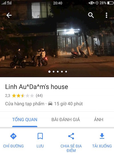 Theo tìm hiểu, có đến chục tên gọi khác nhau được đặt cho địa chỉ nhà của Nguyễn Hữu Linh như “Linh ấu dâm”, "Linh D.Ô”, “Linh ấm dâu”, “Linh Auzam”… và được “fake” với đủ loại hình doanh nghiệp trên bản đồ Google như nhà hàng, cửa hàng tạp phẩm, khách sạn… với thời gian mở cửa… cả ngày.