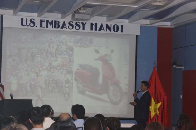 Michael Shell, nhà kinh tế học của Văn phòng Giao thông và Chất lượng Không khí (OTAQ) thuộc Cơ quan Bảo vệ Môi trường Mỹ, ngày 26/4 đã tới dự và phát biểu tại Tọa đàm nhân Tuần lễ Nâng cao nhận thức về Chất lượng không khí do Đại sứ quán Mỹ tổ chức.