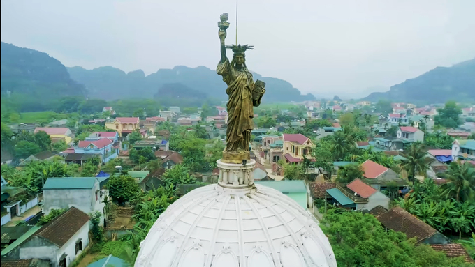 Lấy ý tưởng từ thời kỳ Phục hưng vào thế kỷ 14 đến 17 ở châu Âu, nhưng gia chủ vẫn lồng ghép bức tượng Nữ thần Tự do của Mỹ để tạo điểm nhấn. Tổng diện tích đất 1.100 m2, phần nhà ở 560 m2. Còn lại là lối đi chứa được 10 ôtô và khoảnh vườn nằm ngay trước mặt tòa nhà.