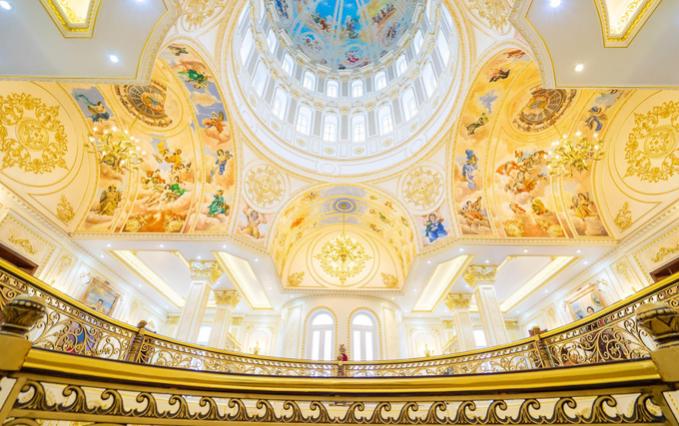 Bên trong dinh thự Thanh Hóa có nội thất mạ vàng khiến nhiều người không khỏi trầm trồ. Tất cả các chi tiết bên trong dinh thự được mạ vàng công nghiệp. Vào bên trong cũng có nhiều ánh sáng tự nhiên do thiết kế mở và hiện đại.