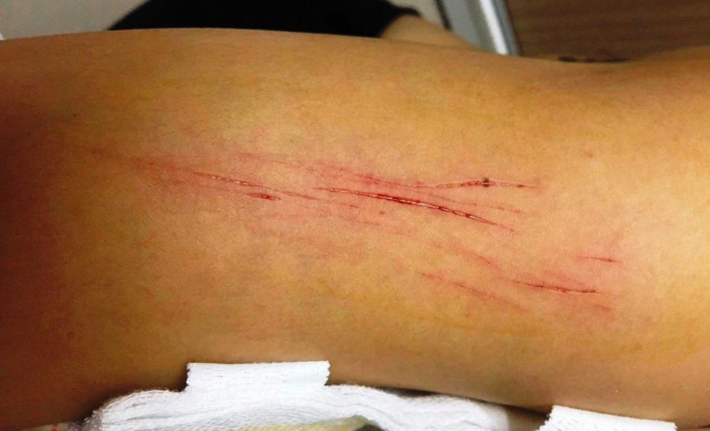 Lúc này bất ngờ có 2 thanh niên đi xe máy chạy cùng chiều áp sát và dùng vật nhọn sượt vào cánh tay phải khiến cô gái trẻ bị chảy máu rất nhiều. Cả 2 thanh niên "biến thái" nhanh chóng phóng xe bỏ đi sau khi gây ra vụ việc.