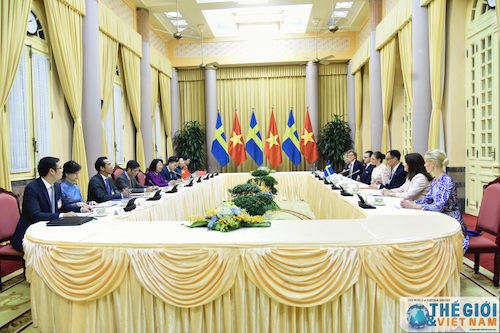 Ngay sau đó, Phó Chủ tịch nước Đặng Thị Ngọc Thịnh và Công chúa kế vị Thụy Điển Victoria Ingrid Alice Desiree đã tiến hành hội đàm.
