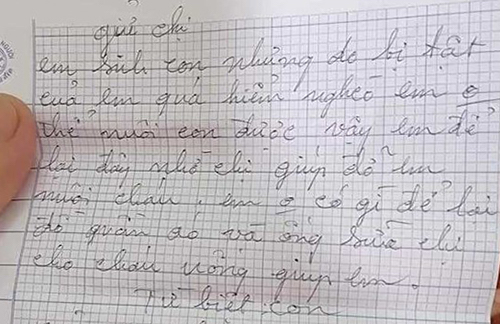 Kiểm tra túi đồ do người mẹ để lại, các bác sĩ phát hiện ngoài ít bộ quần áo, bình sữa thì còn một lá thư tay viết vội với nội dung: Do bệnh tật của quá hiểm nghèo, em không thể nuôi con được, vậy em để lại đây nhờ chị giúp đỡ em nuôi cháu. Em không có gì để lại đồ áo và ống sữa chị cho uống giúp em. Từ biệt con.