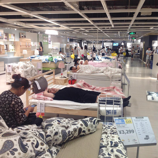 Chuỗi cửa hàng IKEA ở Bắc Kinh, Trung Quốc, cho phép người tiêu dùng nằm thử, thậm chí ngủ một giấc trên những chiếc giường trưng bày