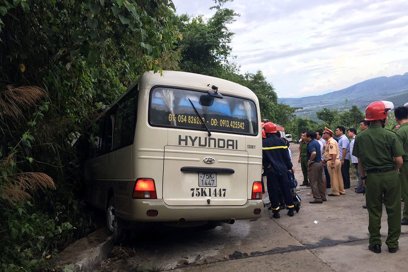 Xe khách đột nhiên mất lái khi đang chở sinh viên người nước ngoài đổ dốc đường Bạch Mã (huyện Phú Lộc, Thừa Thiên-Huế) ra QL1A, va chạm mạnh vào vách núi khiến nhiều sinh viên bị thương.