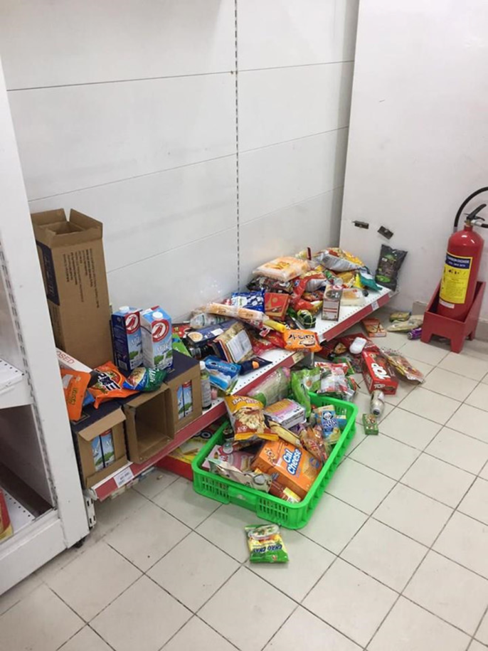 Tại Auchan Mai Lan (quận Tân Bình), hộp bánh, thanh sô cô la ăn dở, bao đường bị khách hàng tự khui, làm rách những bịch đường nhỏ loại 1 kg, hạt đường rơi vung vãi khắp mặt sàn.