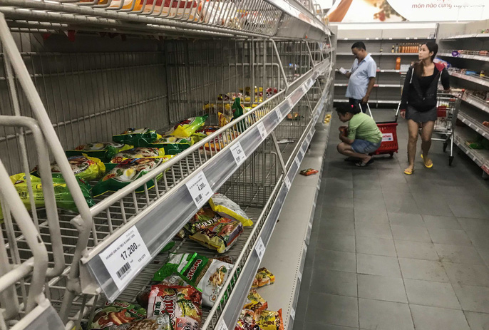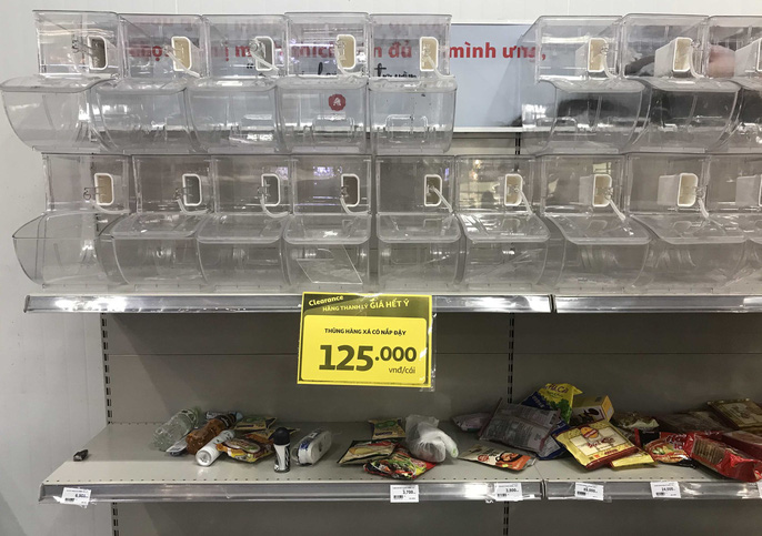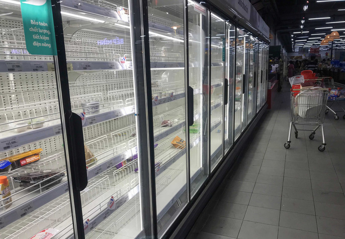Cũng trong chiều 22-5, phóng viên Báo Người Lao Động ghi nhận tại siêu thị Auchan Cao Thắng (quận 3), hàng hóa ở nhiều quầy, kệ, tủ mát đều đã được bán sạch. Một số kệ còn hàng hóa nhưng số lượng rất ít, vương vãi khắp nơi.