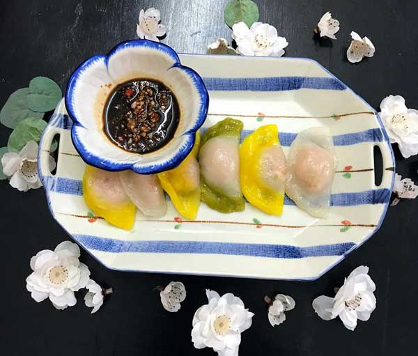 Cách nhồi bột há cảo cũng gần như nhào bột năng để làm bánh bột lọc chỉ sử dụng nước đun sôi thật nóng.