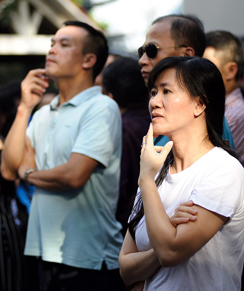 Phụ huynh chờ đợi con ngoài phòng thi. Ảnh: Duy Anh.