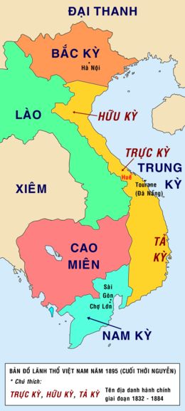 Pháp không phải là người đầu tiên chia nước Việt Nam ra làm 3 miền hoặc kỳ. Từ hơn 2000 năm trước 3 miền đất nước có lịch sử văn hóa khác nhau. Miền Bắc có văn hóa Trung Hoa giống Giao Chỉ. Vùng Thanh Hóa, Nghệ An, Hà tỉnh xưa thuộc nước/quận Cửu Chân có văn hóa và chủng tộc Mường pha trộn với Chiêm Thành. Xứ này hội nhập vào miền Bắc tức nước Đại Việt thế kỷ thứ 11 đời Lý. Từ Quảng Bình vô tới Phan Rang thuộc nước Chiêm Thành có văn hóa Ấn Độ đa đảo theo mẫu hệ. Nước Chiêm Thành hoàn toàn biến mất thế kỷ 19 năm 1832 triều Minh Mạng. Từ Biên Hoà tới Cà Mau thuộc Chân Lạp, người Khmer, Phật giáo Nam tông, văn hóa Ấn độ. Cao nguyên miền Trung có nhiều tiểu quốc riêng lẻ hội nhập vào nước Việt Nam thế kỷ 19. Vùng Cao nguyên còn được gọi là Hoàng Triều Cương Thổ, bị tổng thống Ngô Đình Diệm bỏ tư cách tự trị để nhập vô nước Việt Nam Cộng Hoà nhưng thời VNCH, người Jarai, Ê Đê gốc Thượng, Chăm chiếm đa số ở đó.