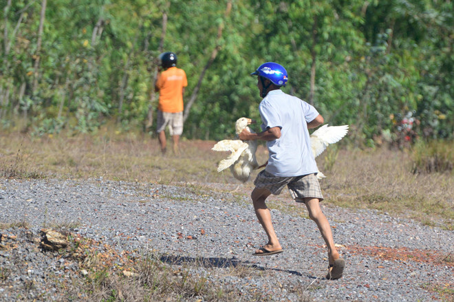 Nhiều cảnh sát phải trực tiếp đi lùa vịt, một số khác trực tiếp đi giành lại những con vịt còn sống trên tay người dân để trả lại phía nhà xe.