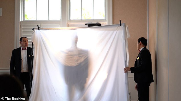 Đầu buổi gặp, vị triệu phú đứng giấu mình sau tấm vải mỏng. Ảnh: The Beehive.