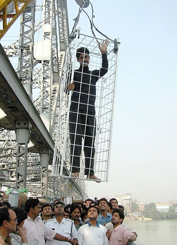 Trước đó, Lahiri tuyên bố ông từng thực hiện thành công trò ảo thuật tương tự cách đây 21 năm tại cùng địa điểm này. "Tôi ở bên trong một hộp kính chống đạn với dây xích và các ổ khóa, được hạ xuống từ cầu Howrah. Sau đó, tôi thoát ra ngoài trong vòng 29 giây", ông nói.