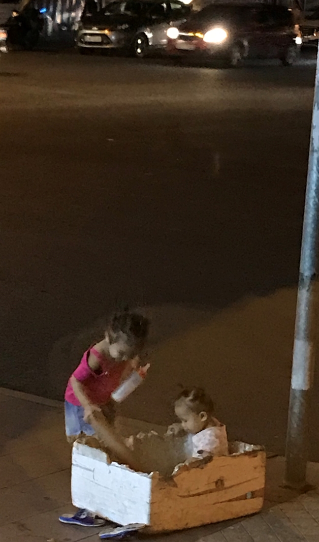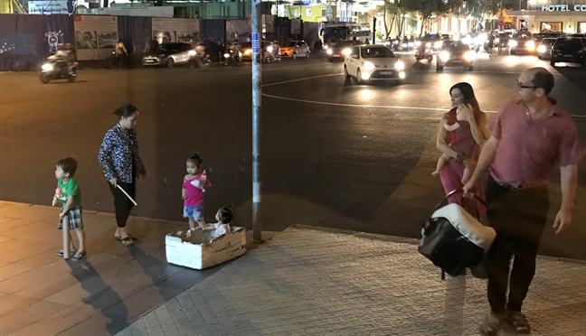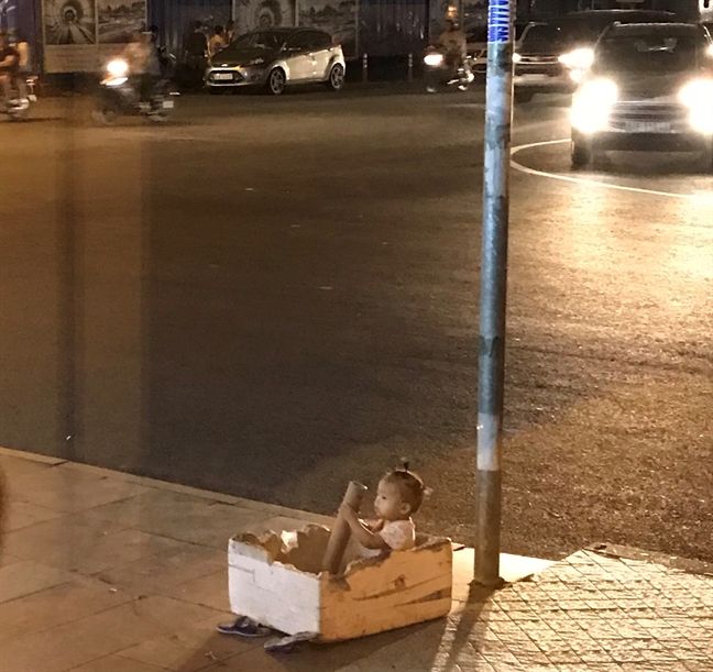 Thỉnh thoảng những “người lớn” xa lạ vội vã bước qua. Người ngoái đầu nhìn lại vì tò mò, kẻ nhủ lòng thương cảm nhưng rồi đều lắc đầu bỏ đi. Gần 8 giờ tối, 3 đứa trẻ vẫn ở bên vệ đường, chạy nhảy. Ngay cạnh chúng, từng làn xe ô tô, xe gắn máy vẫn lướt qua.