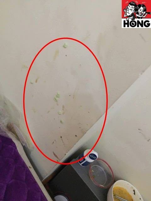 Trên tường thì không thiếu những vết bẩn không rõ nguồn gốc.