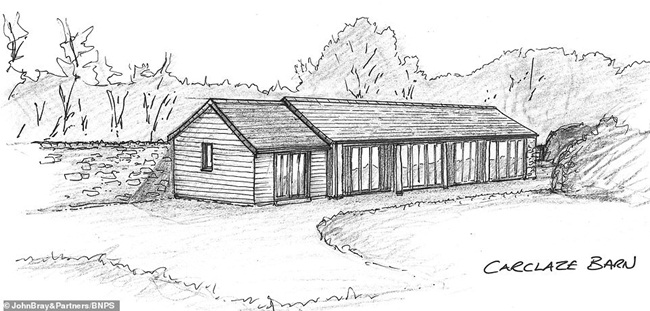 Bản vẽ phác họa ngôi nhà dài sau khi cải tạo chuồng bò cũ này.