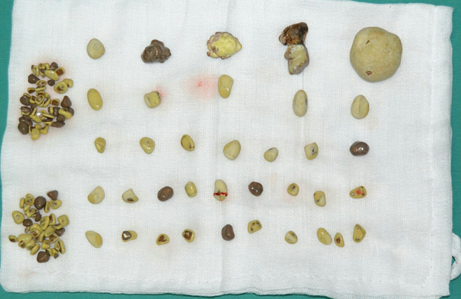 Không thể tin được số lượng sỏi được bác sĩ gắp ra khỏi người bệnh nhân này. Người đàn ông 62 tuổi ở Phú Thọ nhập viện trong tình trạng đau nhiều thắt lưng phải.