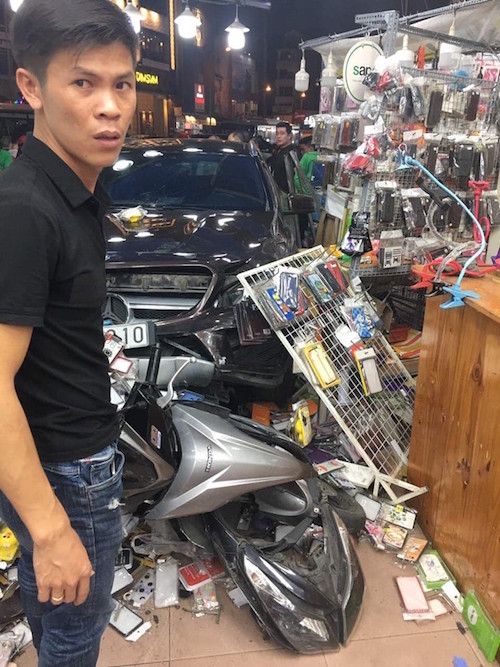 Khi chạy đến ngã tư Trần Phú - Nguyễn Tri Phương thì tông hàng loạt xe máy tại giao lộ rồi lao vào cửa hàng bán phụ kiện điện thoại trên đường Trần Phú.