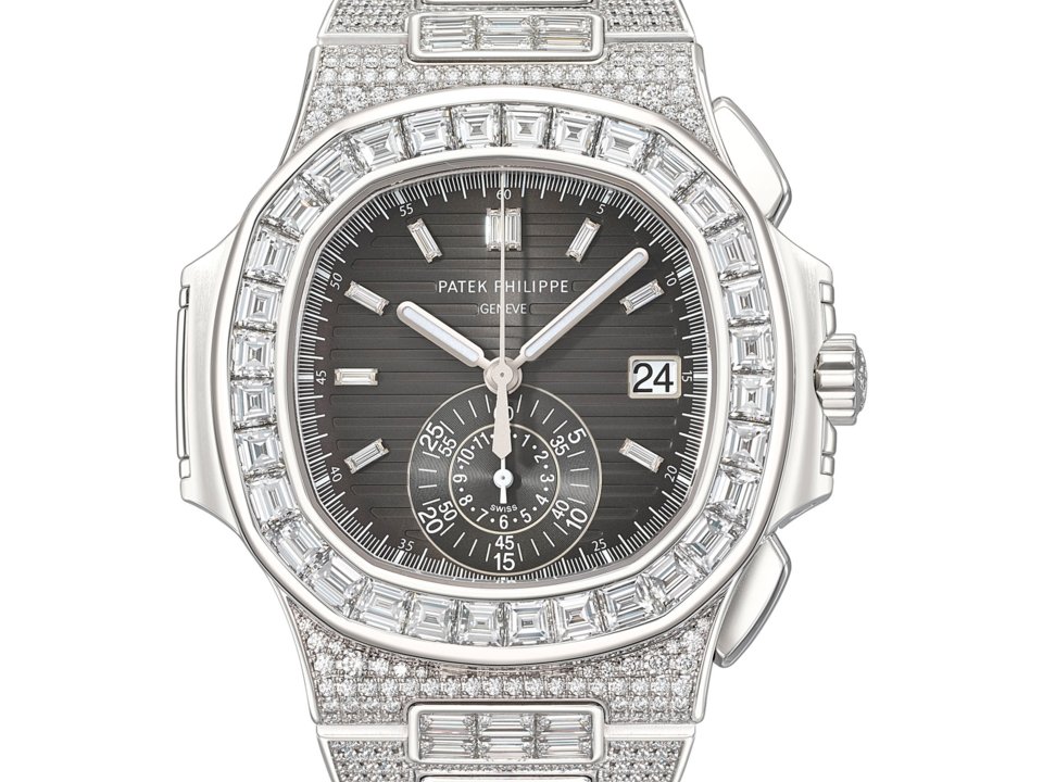 Một chiếc đồng hồ đeo tay chronograph (đồng hồ nhiều kim) của Patek Philippe có thiết kế tinh tế và độc ​​đáo. Nó được làm từ vàng trắng 18k và mặt số kim cương màu đen, mang về cho nhà đấu giá khoảng 614 ngàn đô la (khoảng 14 tỷ đồng).