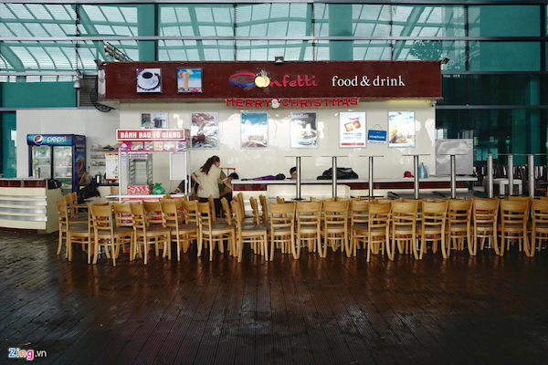 Nhân viên một nhà hàng trong khu vực nhà ga cho biết họ nhận nhiệm vụ trực ở quầy cho đến 15h mới được về. "Sáng nay chỉ có vài khách đến nhưng khi biết thông tin các chuyến bay bị dừng khai thác do bão họ đã quay đi, trong số đó hầu hết là khách bay chuyến Hải Phòng - TP.HCM", một nhân viên phục vụ nói.