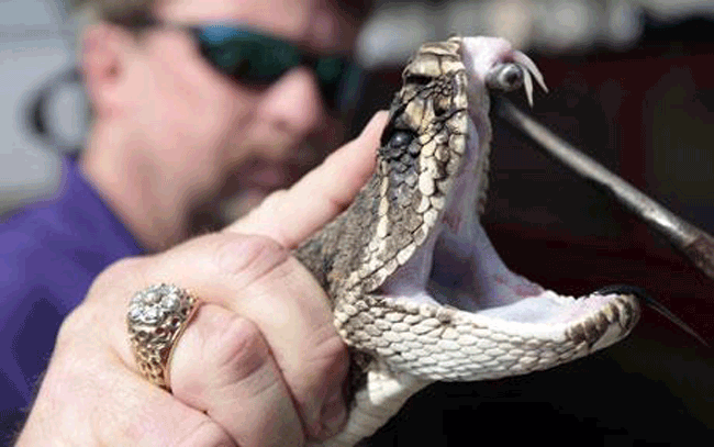 3. Rắn chuông chiên: Nếu bạn đến Texas, Hoa Kỳ thì sẽ cảm thấy ngạc nhiên khi món rắn chuông chiên rất phổ biến. Sau khi giết và làm sạch, rắn chuông được được ướp trong sữa trước khi bọc trong bột ngô và chiên giòn. Vị của chúng gần giống với thịt gà, thực khách thường không biết mình ăn loại thịt gì nếu không được giới thiệu từ trước.
