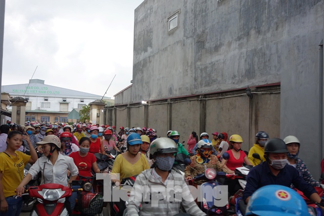 Mặc dù không được làm việc nhưng ngày nào hàng nghìn công nhân cũng đến nhà máy chờ thông báo ngày đi làm trở lại.