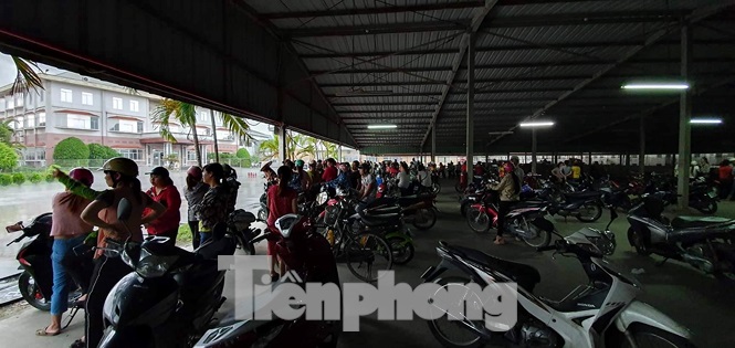 Nhà để xe trở thành nơi trú mưa của công nhân.