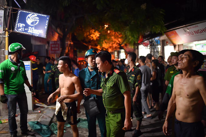 Đến 19h40 phút, đám cháy chưa được khống chế, đầu phố Hạ Đình đã bị phong toả để phục vụ công tác chữa cháy.