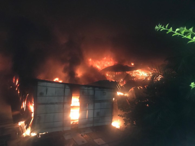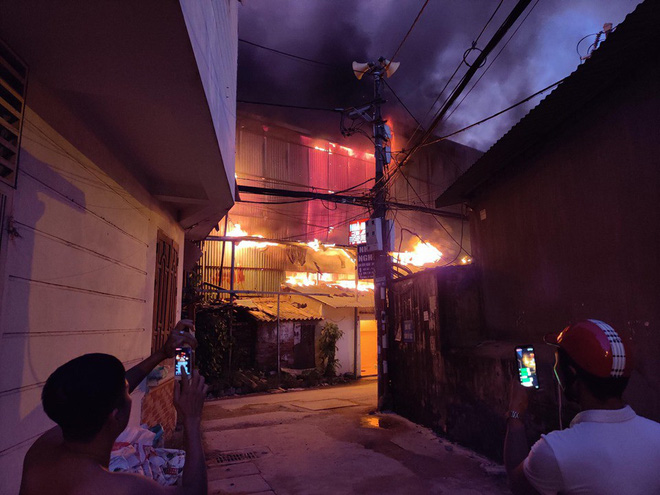 Ít phút sau, đám cháy lan toàn kho chứa phích nước. Kho chứa đồ bị cháy rộng khoảng 500 m2. Sau khi nhận tin báo cháy, khoảng 10 xe cứu hoả tới hiện trường.