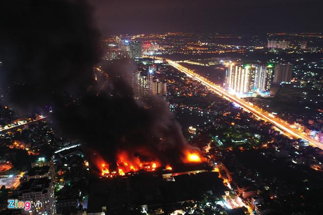 Phải đến 23h40 cùng ngày đám cháy mới cơ bản được khống chế, không còn nguy cơ cháy lan.