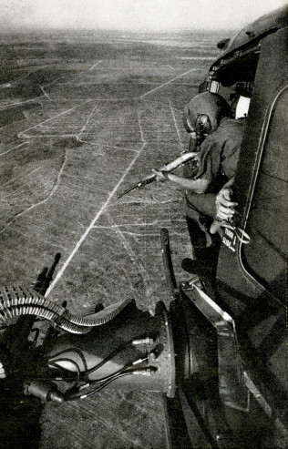 Lính trên trực thăng xả súng xuống trong một chiến dịch tìm và diệt.