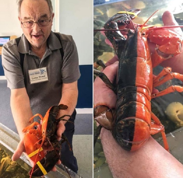 Một ngư dân ở ngoài khơi Maine, Mỹ, mới đây đã bắt được một con tôm hùm cực kỳ hiếm với hai tông màu khác nhau. Theo đó, màu sắc của con tôm hùm được chia làm hai phần đều nhau theo chiều dọc, một phần có màu tối, phần có màu sáng.