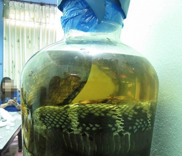 Về nhà, chồng chị D. lấy thước ra đo và thấy nó dài đúng 7m, cân nặng 21kg. Chiếc bình thủy tinh có chu vi tới 1,2m, mà cuộn con rắn hơn 6 vòng mới hết. Con rắn có tới 120 vòng thân. Theo một số người con rắn này đã 120 tuổi!