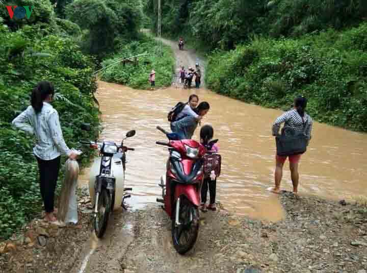 Dù vậy, ở lứa tuổi của Hải, vượt qua những cây gỗ bắc chênh vênh qua suối hay con đường lầy lội bùn đất cũng đỡ khó khăn, vất vả so với các em học sinh tiểu học. Còn những hôm lũ lớn, không chỉ các lớp học có lác đác vài học sinh mà nhiều thầy giáo, cô giáo cũng không thể đến trường.