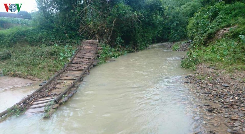 Ngày mưa lũ những cây cầu tạm ngập trong nước.