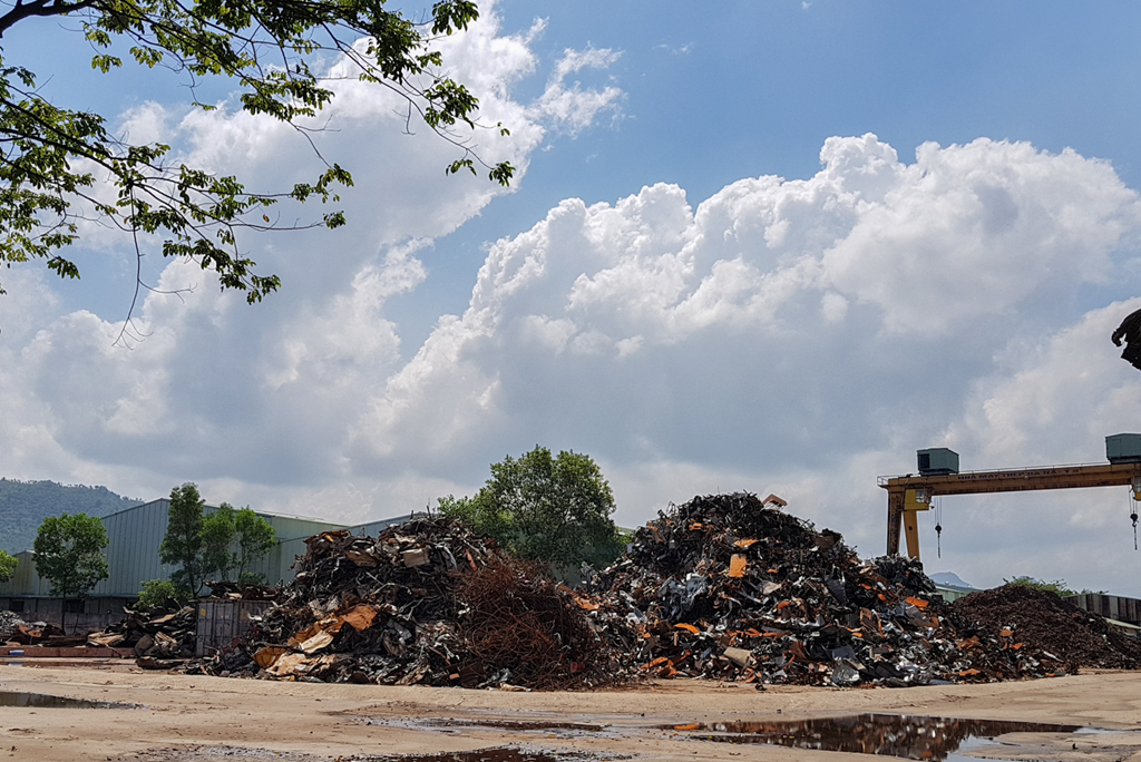 Hiện nhà xưởng của công ty không có công nhân. Máy móc, xe chở vật liệu nằm im bên những đống sắt phế liệu ngổn ngang.