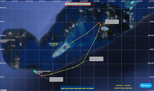 Sau 6 ngày rời khỏi khu vực gần bờ biển Việt Nam đến Đá Chữ Thập, tạm nghỉ lần thứ 3. Vào lúc 06:02 sáng 28.9, Haiyang Dizhi 8 đã ra khỏi Đá Chữ Thập tiến vào vùng đặc quyền kinh tế Việt Nam, triển khai đợt khảo sát thứ 4 (clip 1).