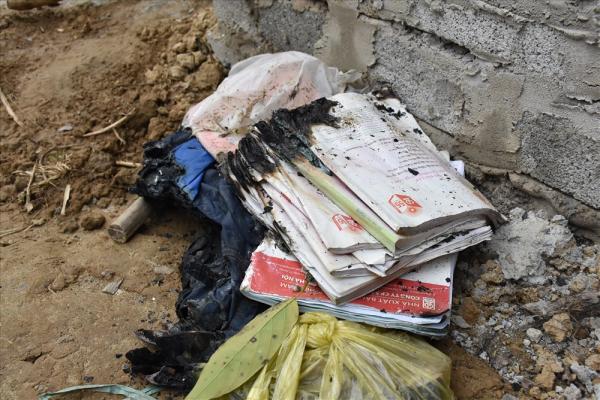 Đống củi, bì phân lân và sách vở bị chá*y nham nhở. Ảnh: X_H
