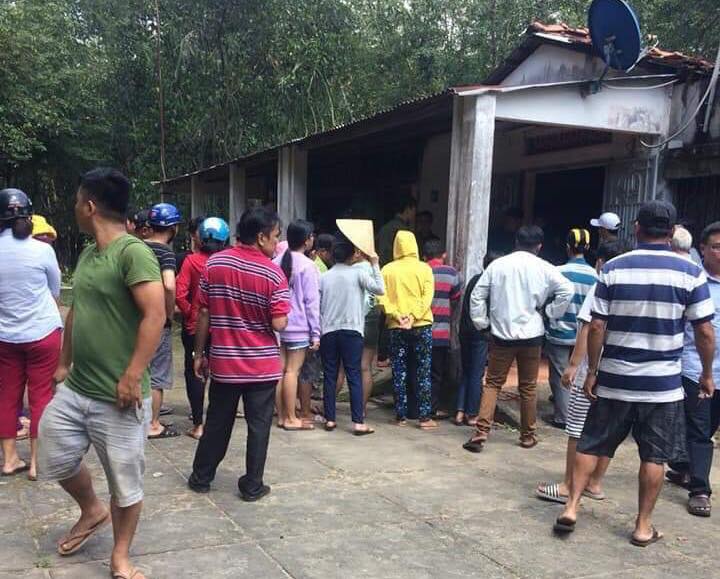 Hiện trường xảy ra vụ án mạng là căn nhà cấp 4 nằm trong lô cao su, sự việc khiến hàng trăm người tập trung theo dõi.