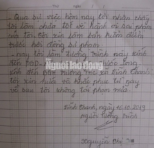 Old  Default Bản tường trình sai chính tả, sai nội dung của cô giáo ném vở học sinh xuống đất