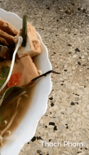 Điển hình như mới đây, một anh chàng có nickname T.P đã đăng tải lên mạng xã hội một đoạn clip ngắn ghi lại cảnh mình phát hiện ra một sinh vật lạ, bò ngoe nguẩy trong bát bún riêu mới gọi khiến nhiều người kinh hãi.