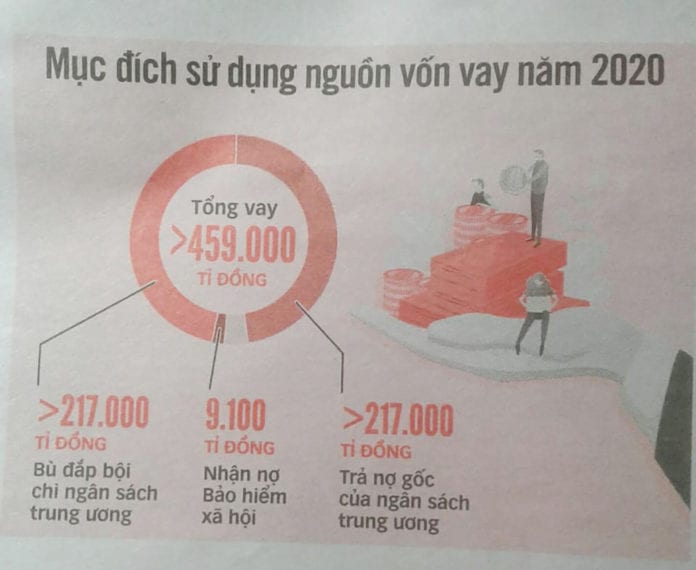Chính phủ CSVN đề nghị quốc hội phê duyệt khoản vay thêm 495,000 tỉ đồng ($19.7 tỉ) “để chi tiêu và trả nợ” trong năm 2020, sau khi báo nhà nước thông báo, còn người dân có thể hiểu là không một đồng nào trong khoản tiền lên đến gần $20 tỉ này được dành để đầu tư công, mà toàn là để gánh nợ và trả nợ.