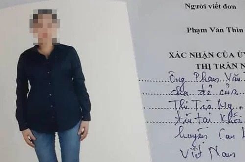 Kèm đơn gửi chính quyền thị trấn Nghèn, ông Thìn gửi ảnh con gái Trà My, mô tả cô cao 1,5 m, nặng 46 kg. Ông đề nghị UBND thị trấn Nghèn xác nhận mình là cha của Trà My để làm các thủ tục pháp lý liên quan đến nhận dạng với mong muốn đưa con gái từ Anh về Việt Nam.
