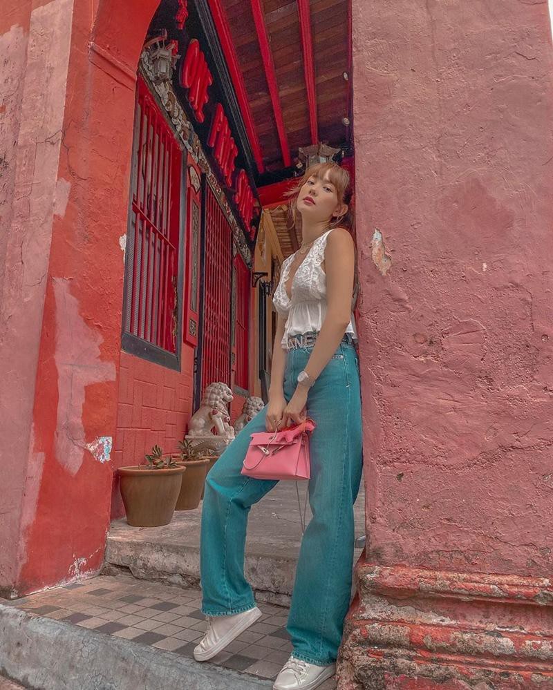 Jeans và crop top cũng đem lại cho Minh Hằng điểm cộng đáng kể. Nữ ca sĩ nâng cấp bộ cánh street style nhờ điểm xuyết thắt lưng Chanel và túi Hermès cỡ nhỏ xinh xắn.
