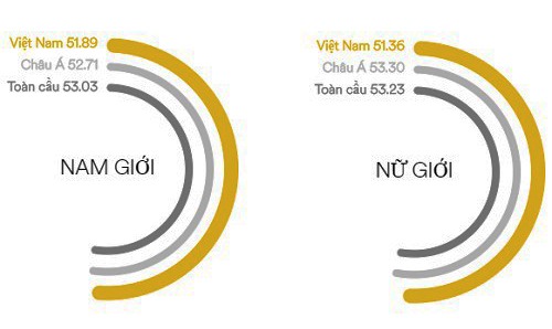 Xét theo giới tính, khả năng tiếng Anh của nam giới Việt Nam nhỉnh hơn nữ giới, lần lượt là 51,89 và 51,36 điểm. Tuy nhiên, điểm số này đều thấp hơn trung bình châu Á và toàn cầu.